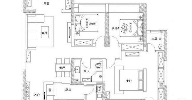 房屋平面圖,小三居,兩衛。
