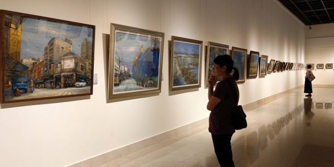 新北市藝文中心展出數十件各地人文風景畫達觀畫會。(圖/文化局提供)