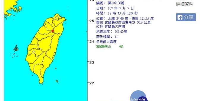 Posted in 生活情報 快訊/18:43宜蘭發生規模4.1地震 震源深度10公里 Author: admin Published Date: 2019-06-13 快訊/18:43宜蘭發生規模4.1地震 震源深度10公里 本站聲明:網站內容來源於台灣好新聞網絡,如有侵權,請聯繫我們,我們將及時處理 Author: admin