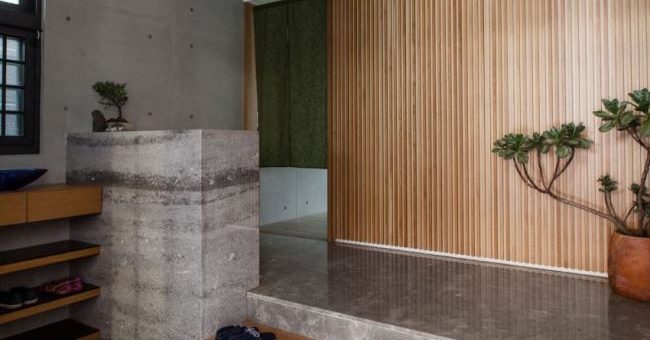 設計了大量的玻璃門窗為整個空間帶來充沛的陽光,小小的室內花園布置在客廳和浴室的夾角處,除了混凝土的使用,淺色系的木質元素也是日式住宅不能少的材質。