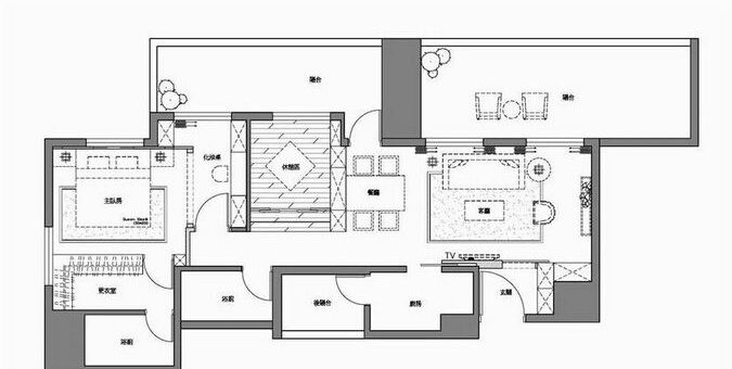 空間格局:玄關、客廳、餐廳、休憩室、主卧房、化妝室、更衣室、衛浴×2