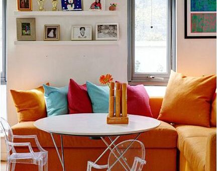 裝飾tips:橘色的沙發,鮮亮明艷,提升了整個小戶型客廳的亮度,繽紛的靠包裝飾,過渡了單一色彩的沉悶,讓客廳變得鮮活起來。