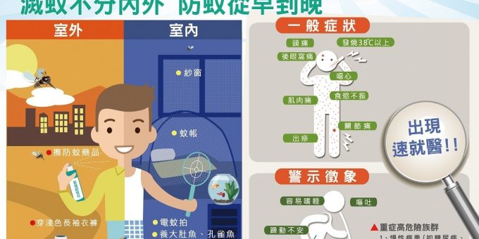 此外,適逢暑假期間,疾管署提醒民眾如計劃前往登革熱流行地區應作好防蚊,穿著淺色長袖衣褲、於皮膚裸露處塗抹衛福部核可的防蚊藥劑、居住在有紗窗、紗門或空調設備的房舍等;返國後如出現疑似症狀,應儘速就醫,並告知醫師旅遊活動史。