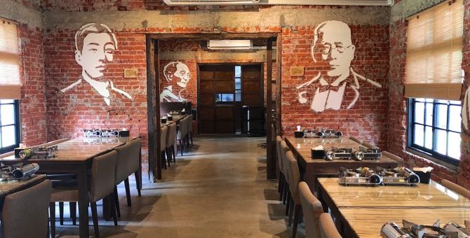 今年初,李翰凭又標下善化糖廠裡的廢棄辦公廳舍,一個宛如廢墟的空間被他改造成「廳舍餐廳」,最特色是,他利用原本長了壁癌的混凝土牆壁敲敲打打,在牆上鑿出一顆又一顆這100多年來與台灣文學跟台灣糖業相關的人頭肖像,藝術之美讓人驚嘆,開幕不到半年,現在已經成台南最難訂餐廳之一,常常連平日中午都要排隊。