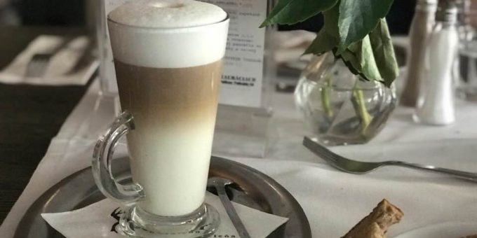中歐旅行的第一餐,斯洛伐克的第一杯拿鐵,在廣場區的「Pulitzer」。店有顆巨大的糜鹿頭標本,麫包乾到爆炸。鴨醬像冰淇淋似給超大一坨,很美的咖啡一杯兩歐,感覺划算。