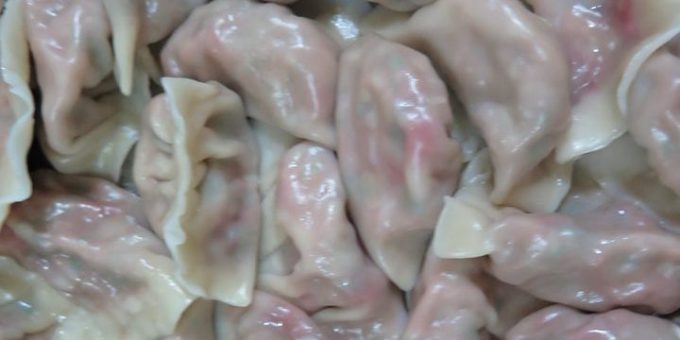 吳月圓老師上週教習的主食是「匏仔火龍果皮(素)水餃」,主要餡料是瓠瓜、香菇、油豆腐、山芹菜,用火龍果皮做色,素臊、薑麻油調味,熟煮的元寶油亮透紅,喜感十足。讓一向對素水餃沒好感的阿北仔吃得撐了還捨不得停筷。(課後心得:蛋奶素的食家不妨在餡料裡加個鹹蛋黃碎末應會有蟹黃餃的味道)