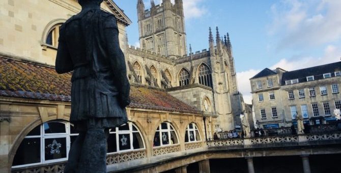 往巴斯火車站斜對面的St Lawrence Street走,就會進入巴斯的主要商店街,許多知名品牌聚集在此,接著往北步行一小段,就會抵達著名的地標羅馬浴場(Roman Baths)。