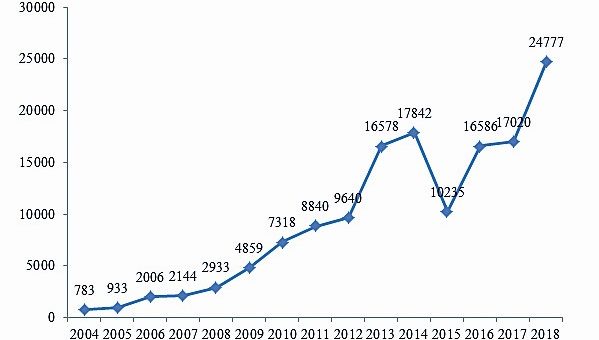 2004年-2018年汽車產品缺陷線索報告數量