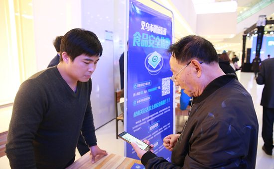 食品安全指數APP啟動現場,消費者在工作人員指導下安裝APP。
