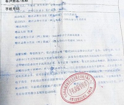 2015年5月22日,重慶消費者顏浩在中國移動通信集團網上商城購買了一部聯想A320T手機,售價499元。重慶移動公司當日簽署業務受理單,承諾“贈送300元話費”,分12個月返還到顏浩的手機號18723436711上。“按照約定,重慶移動公司每個月應返還25元到我手機上,但我一分錢都沒有收到過。”顏浩告訴《中國消費者報》記者,他多次撥打客服電話諮詢,要求返還話費,對方總是答覆“正在處理”。