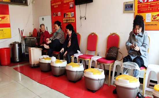 老年人正在會心堂體驗中藥泡腳。李洪濤攝