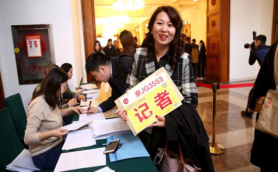 兩會媒體大戰即將拉響 全國政協禮堂記者排長隊領證