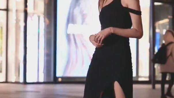 畫面上的美女走在城市的街頭,透着一種妙齡女郎的時尚氣質。不輸模特的好身材,苗條的身形,配上一身黑色的邊衣裙,走在夜晚的人群中,顯得更外的清新亮眼。淡妝的點綴,讓她有一種很迷人的女人味。