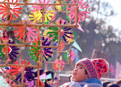 1987年1月30日,北京地壇春節文化廟會,買風車、吃小吃是孩子們最大的樂趣。