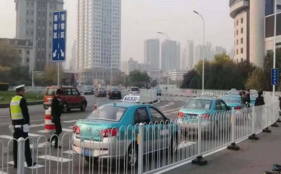 天津站前廣場停靠着一排“不打表”出租車。萬曉東/攝