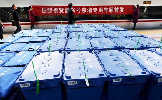 據了解,今年電商黃金周期間,中鐵快運公司首次在北京至長沙的G83、G506次“復興號”動車組上設置了“京湘專用車廂”,實現北京和湖南兩地間電商快件快速直達,每天往返一趟,該車廂一次可運5噸貨物,裝載能力是普通貨運櫃的10倍。