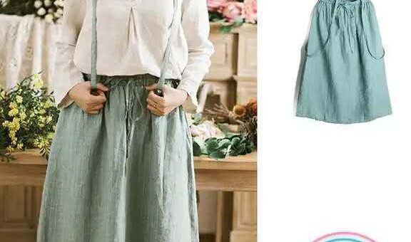 1. 細帶亞麻襯衫+可拆卸背帶亞麻半裙