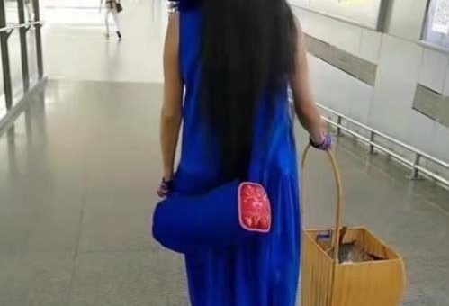 61歲楊麗萍再刷時尚新潮,頭戴“枕頭”出行,雙手下垂指甲搶鏡