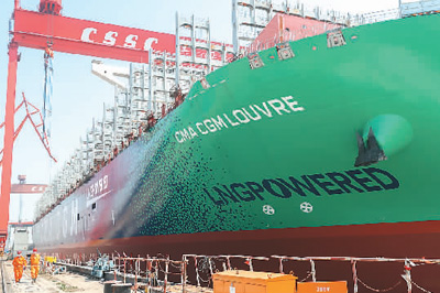 近日,位於上海長興島的江南造船(集團)有限責任公司在做好疫情防控的同時,加快復工復產。圖為江南造船(集團)有限責任公司廠區。 |