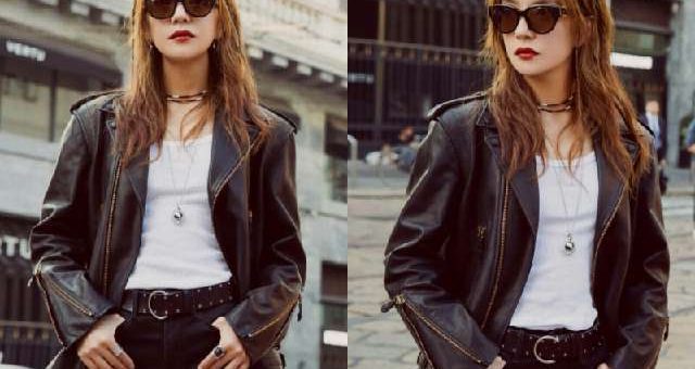 但自從她瘦了之後,整個人就開始開掛的變美了,而且穿衣品味也是越發的提高,有時尚達人的風範!墨鏡皮衣白T恤,非常帥氣!