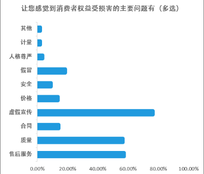 中國消費者報報道(記者裴瑩)為更好地了解各類消費中常見的問題和侵權現象,《中國消費者報》聯合今日頭條財經頻道聯合開展了“2020消費維權調查”。調查結果显示,參与調查者中,近四成認為家用电子電器類消費侵權問題在眾多商品消費類型中最為突出;近八成認為虛假宣傳是讓其感到權益受損的主要問題。