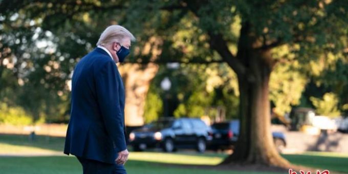 - 當地時間10月2日下午,美國總統特朗普在確診感染新冠病毒后首度公開亮相。他當天下午從白宮乘機前往馬里蘭州一家軍事醫院。