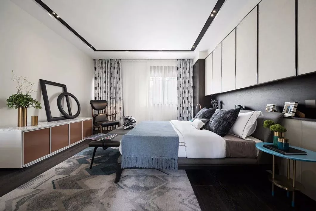 就像榻榻米書房那樣,一些比較小的卧室,衣櫃沒位置擺放的,一般都會在床頭或床尾把衣櫃組合進去設計,而當擺放成品床的時候,往往是床頭位置嵌入衣櫃來設計比較適合,畢竟床尾需要留出空間的動線。