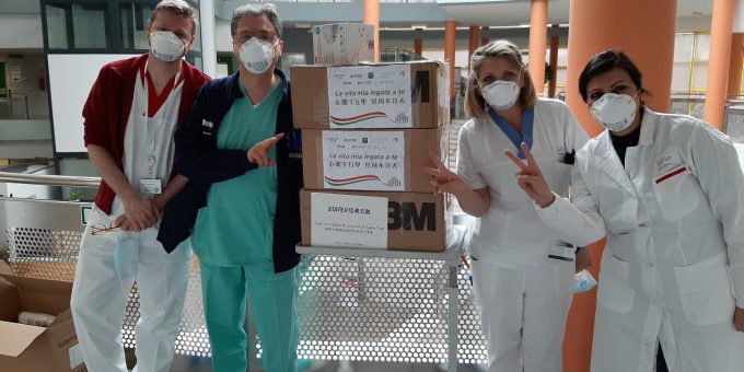 該批物資是由上海復星公益基金會聯合Wolford等多家企業、機構共同捐助,直接抵達包括倫巴第大區貝加莫(Bergamo)在內、疫情最嚴峻地區的8家醫院。