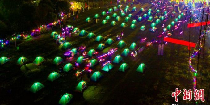 10月2日晚,江西省新余市“錦衣夜跑”帳篷節在仙女湖區鈐陽辦事處昌田村舉行,眾多健身、露營愛好者在做好疫情防護的前提下親近自然,歡度國慶佳節。