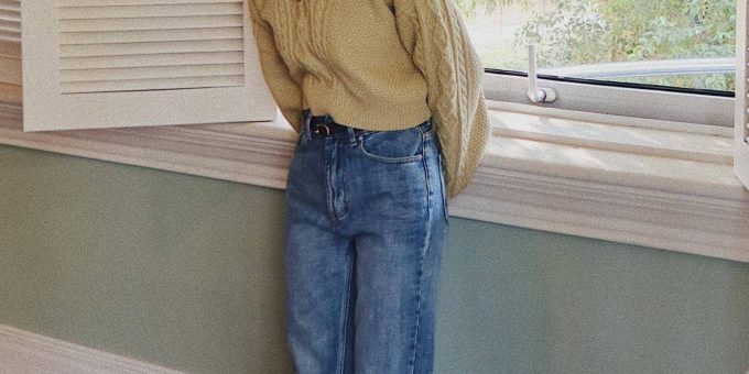 1、公式一:針織衫+高腰牛仔褲