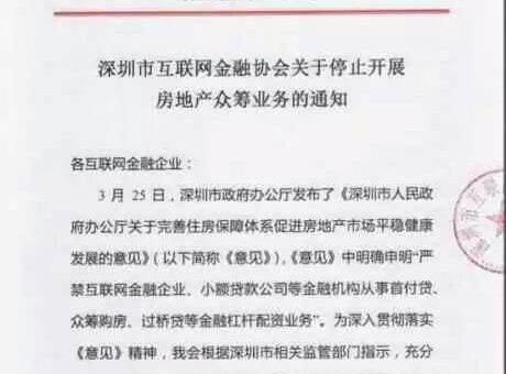 地產中國網快訊 在官方叫停首付貸后,深圳互聯網金融協會今又下發通知,要求各會員企業停止開展房地產眾籌業務,7天內完成自查整改。註冊地在深圳的企業,必須立即停止,註冊在外地但有房地產眾籌項目在深圳的,也必須停止在深圳的房地產眾籌項目。