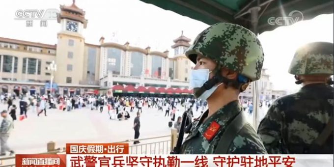 在北京各大公園景區和交通樞紐等人員密集區域,武警北京總隊在落實常態化疫情防控條件下,優化執勤保障預案,保障遊客出行安全。連日來,北京各大火車站客流量驟增,僅10月1日當天發送旅客量就超過了100萬人。擔負車站安保任務的武警北京總隊官兵積極為來往旅客解答指引、悉心講解注意事項,確保人民群眾度過一個安全、愉快、祥和的國慶假期。