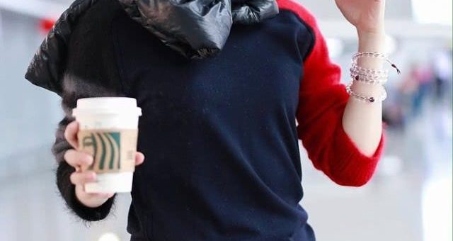許晴身穿的服裝是拼接的毛衣算是比較保暖的服裝形式了吧,雖然服裝不是那種修身的形式,但是本身許晴的身材就是很好的,所以也是能感覺出來許晴的上身比較纖瘦的,服裝的袖子拼接着紅色,讓服裝看着不是那樣的沉悶