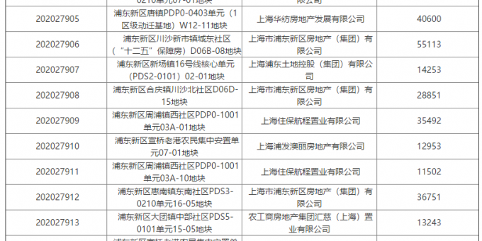 上海住保航程置業有限公司(上海地產)以底價6131萬元摘得浦東新區航頭鎮PDS1-0205單元09-03地塊;