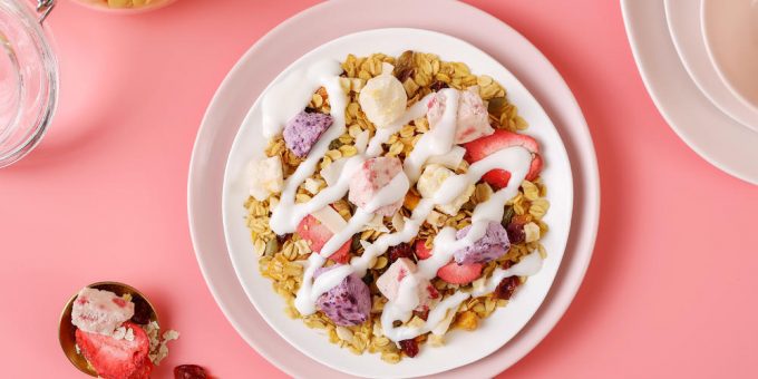 因此,姚婧等人研發了一款營養健康,又方便速食的燕麥。她們對美國速食燕麥的配方進行分析比對,最終研發出100多款配方。她們自建工廠,在麥片中加入水果、酸奶、堅果等,做成一款高顏值麥片。其產品採用整粒原麥片,將其與蜂蜜、油攪拌在一起,然後再低溫烘培。“採用低溫烘焙的方式,能保留麥片的大部分營養,也不容易上火,這樣的麥片吃起來口感香脆,相比於膨化類麥片又比較健康。”