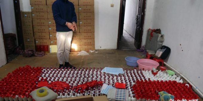 經查,該團伙以2處出租屋為生產點,通過購買制假設備及假外包套裝、瓶蓋等,低價購進用於勾兌的低檔散裝白酒,利用工具進行灌裝並換包裝箱,層層分銷至新疆各地及其他省市。經過犯罪團伙的“換裝”,這些假酒便“身價”暴漲。