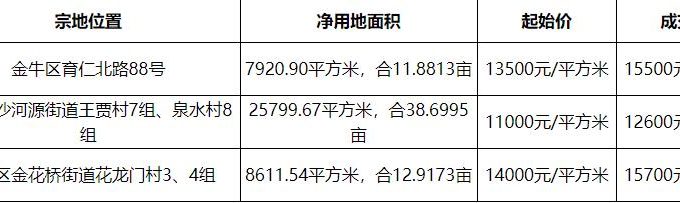中國網地產訊 1月19日,成都主城區3宗地塊集中出讓,總出讓面積63.5畝。最終成都西城置業有限公司15500元/平競得JN18(251):2020-063,溢價率14.8%,同時競配建並無償移交統籌住房面積比例9%。