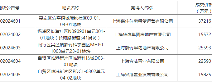 中國網地產訊 1月5日,上海市集中出讓5宗租賃住房用地,總出讓面積11.74萬平,總起始價11.68億元。最終,5宗地塊均以底價成交。