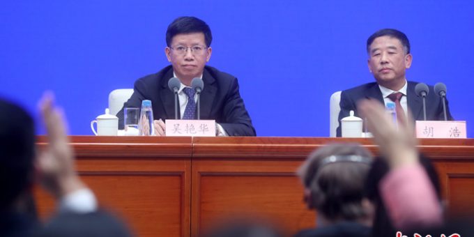 12月17日,國務院新聞辦公室在北京舉行新聞發布會,介紹探月工程嫦娥五號任務有關情況。“請問中國是否會把月球取樣的樣品分享給美國的NASA?”對於外媒記者的這一提問,中國國家航天局副局長、探月工程副總指揮吳艷華(左)表示,中國政府願與各國志同道合的機構和科學家共享月球樣品,但是美國國會已經通過的條款限制了NASA(美國國家航空航天局)與中國航天的往來合作。 中新社記者 張宇 攝
