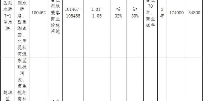 紹市自然告字[2020]69號,地塊名稱為越城區YC-17G-06地塊,出讓面積6.74萬平,土地用途為住宅用地,容積率1.03,建築面積6.94萬平,起始價10.4億元。