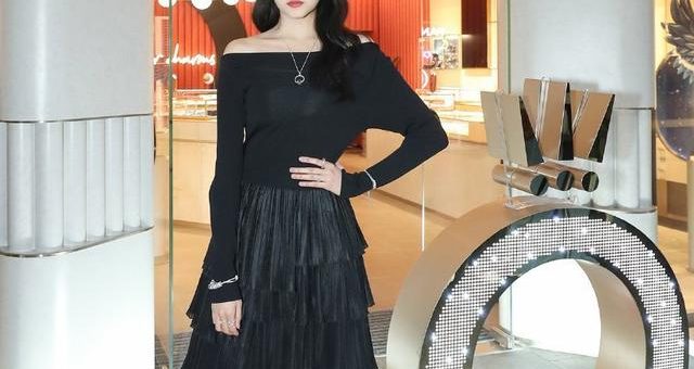 關曉彤這氣質絕了,穿露肩黑色蛋糕裙配高跟鞋