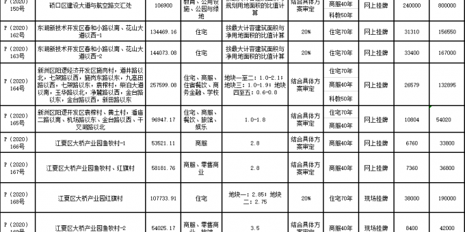 截至發稿,P(2020)167號地塊流拍,P(2020)150號、P(2020)162號至P(2020)166號地塊成交,總成交價157.33億元。
