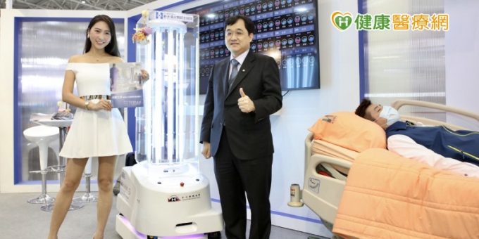 今年新光醫院以「活力新光 樂齡未來」的主題推出四大展區,以防疫、精準醫療、健康檢查三大主題展出,防疫更有非接觸式生理感測器、智駕紫外光機器人以及抗菌抗病毒醫師袍,展現新光防疫決心