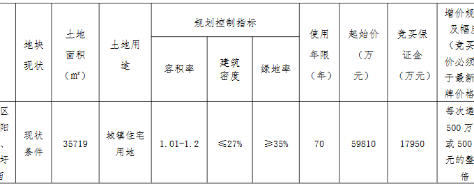 出讓文件显示,該地塊競買人應具備開發二級(含暫定二級)或二級以上資質等級。不接受聯合競買,只接受獨立競買申請。