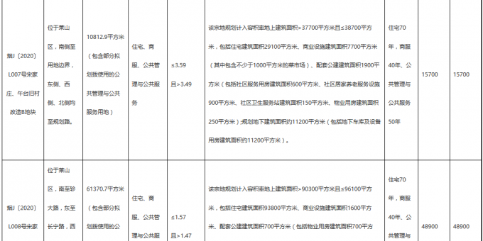 宋家莊、午台舊村改造H地塊成交價4.89億元,樓麵價5088元/㎡。該地塊編號為煙J〔2020〕L008號,位於位於萊山區,南至軫大路,東至長寧路,西至用地邊界、北至逛盪河。出讓面積61370.7㎡,起始價4.89億元。