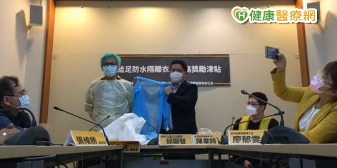 立法委員邱顯智,與中華民國醫事放射師公會全國聯合會 、臺灣醫事檢驗產業工會 、臺北市醫師職業工會10日召開記者會,替放射師、醫檢師請命,請指揮中心給足防水隔離衣,提高獎勵津貼,當第一線醫事人員最有力的後盾。