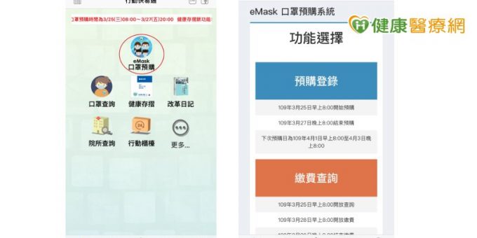 健保署表示,第二期口罩預購登記,健保署簡化手機族操作程序,「口罩預購」功能已置於健保快易通APP主頁面上方,並完成資料更新,新畫面呈現eMask口罩預購,欲購買口罩者可直接點入,即可進入預購登錄程序,其後續的登載內容與第一期網路預購相同。若仍無法出現最新版畫面,Android用戶請至Google Play更新APP、iPhone用戶請至App Store 更新APP,即可使用新版服務。
