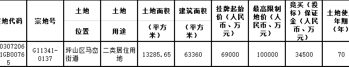 資料显示,該地塊位於馬巒街道。出讓面積13285.65㎡,起始價69000萬元,競買保證金34500萬元。