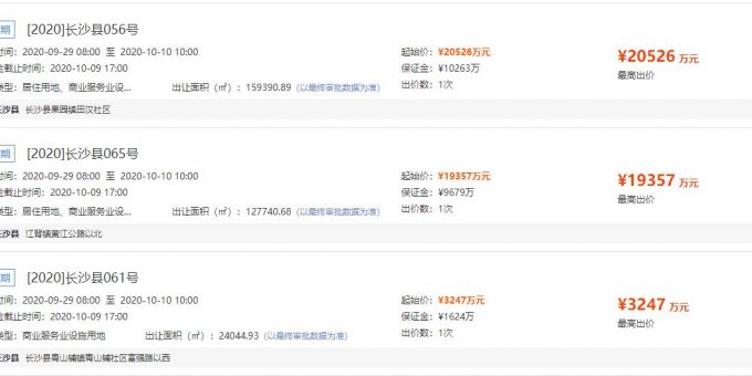 長沙臨空產業投資集團有限公司以底價1.9億元摘得[2020]長沙縣065號地塊。