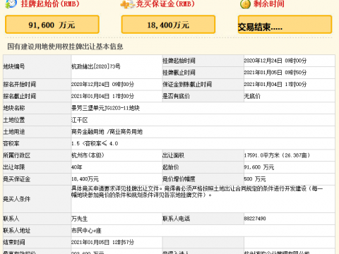 濱江集團20.36億元競得杭州市江干區一宗商業用地
